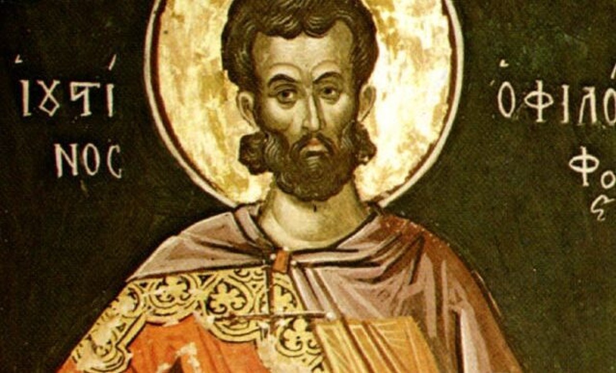 Ο Άγιος Ιουστίνος γεννήθηκε στη Φλαβία Νεάπολη της Παλαιστίνης το 100 μ.X. αι. Οι γονείς του, Έλληνες ειδωλολάτρες (τον πατέρα του έλεγαν Πρίσκο Βάκχιο), φρόντισαν ώστε ο Ιουστίνος να λάβει εξαιρετική θεολογική αλλά και φιλοσοφική μόρφωση, η οποία ωστόσο δεν ήταν αρκετή για να δώσει απάντηση στα ερωτήματα που έθετε η ανήσυχη ψυχή του.