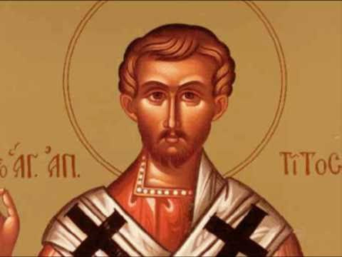 Ἐγκρατείας ἄνθραξι, σαυτόν καθάρας, ἀρετῶν ἐξήστραψας, φωτοειδεῖς μαρμαρυγάς, καταφαιδρύνων τούς ψάλλοντας· Χαίροις ὦ Τίτε, Πατέρων ἀγλάϊσμα.