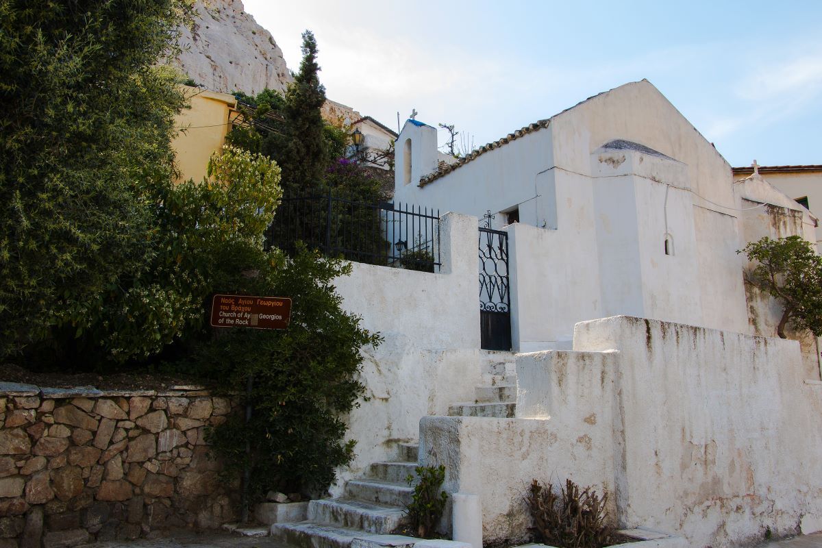 Έξω και δεξιά της εκκλησίας του Αγίου Γεωργίου (εορτάζει στις 23 Απριλίου), την ημέρα της εισόδου των γερμανικών στρατευμάτων στην Αθήνα (27 Απριλίου 1941), κατέπεσε από την Ακρόπολη, τυλιγμένος στην ελληνική σημαία, αρνούμενος να την παραδώσει στους κατακτητές, ο φρουρός Κωνσταντίνος Κουκίδης. Σχετική ενεπίγραφη πλάκα θυμίζει τη θυσία του. Οι δύο ναΐσκοι σήμερα είναι παρεκκλήσια του Αγίου Νικολάου Ραγκαβά.