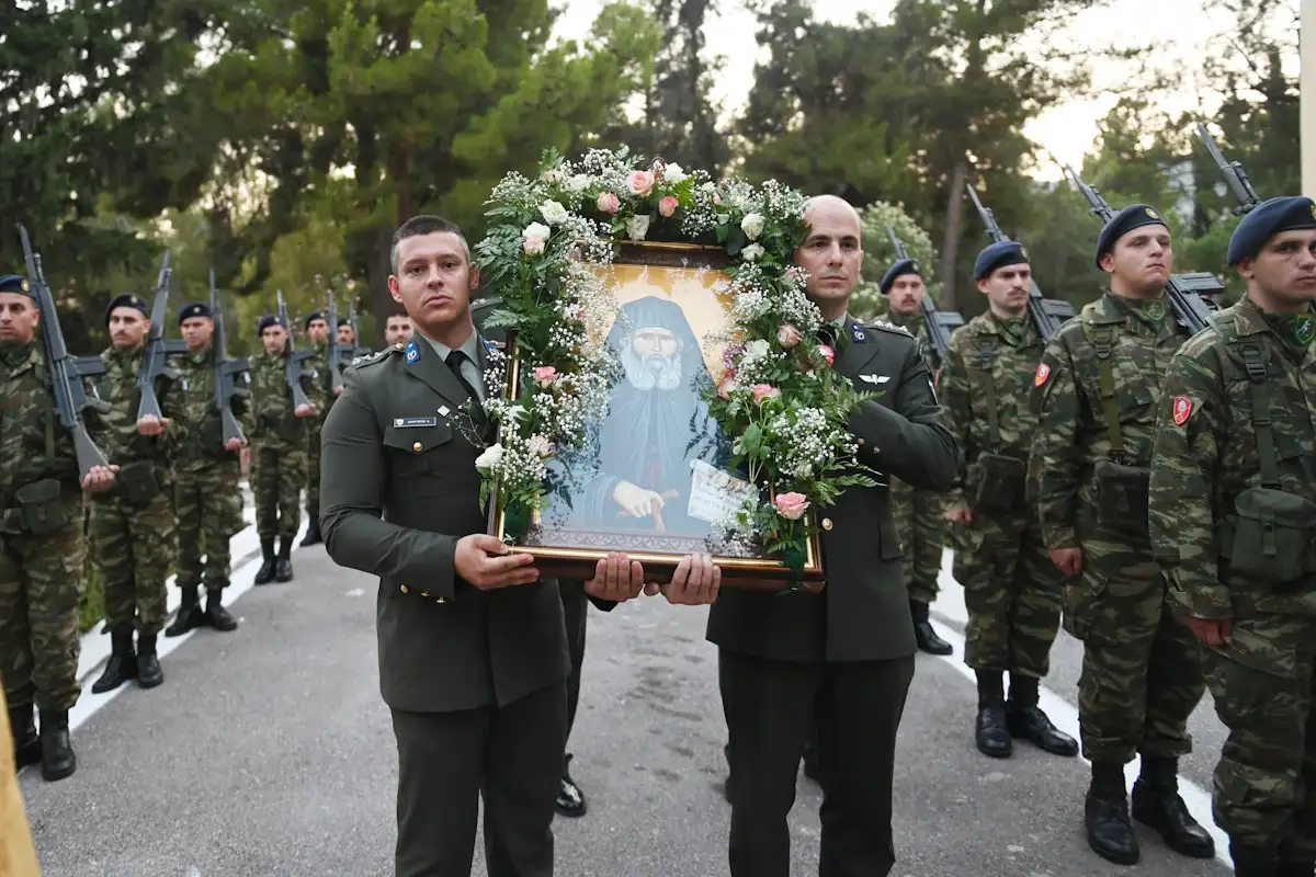 Παράλληλα, τιμητική τελετή για τον εορτασμό της μνήμης του Αγίου Παϊσίου του Αγιορείτου, προστάτη του Όπλου των Διαβιβάσεων, πραγματοποιήθηκε την Παρασκευή και στην Αττική, στο στρατόπεδο «Καραϊσκάκη» στο Χαϊδάρι.