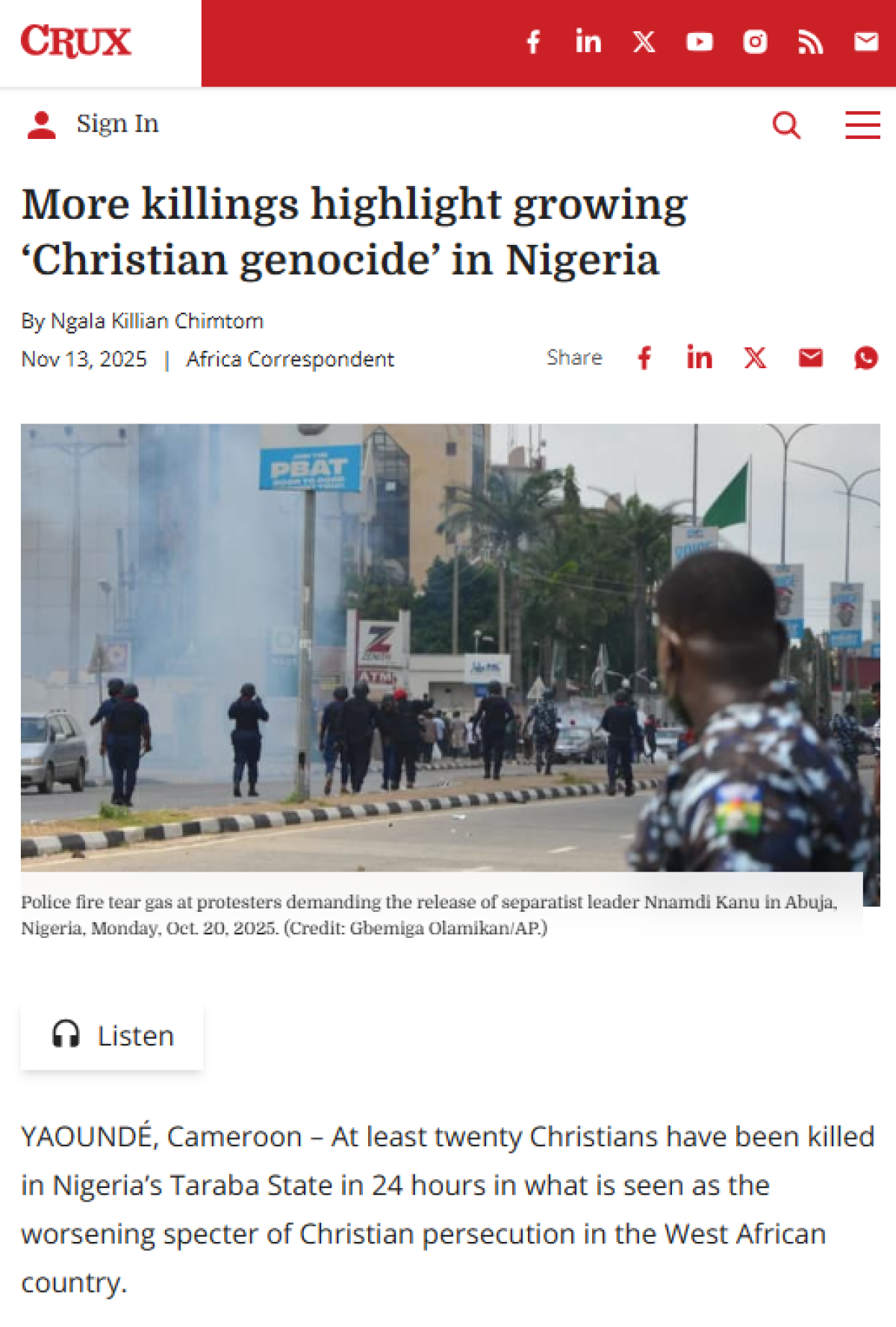 Ο «Χριστιανικός Σύνδεσμος της Νιγηρίας», η μεγαλύτερη ίσως οργάνωση χριστιανών στην χώρα έχει πλέον καταγγείλει και επισήμως την «γενοκτονία» των Χριστιανών στο βόρειο τμήμα της χώρας.