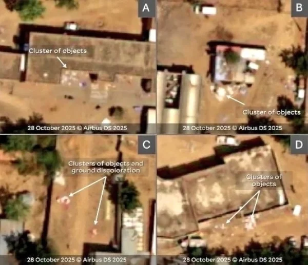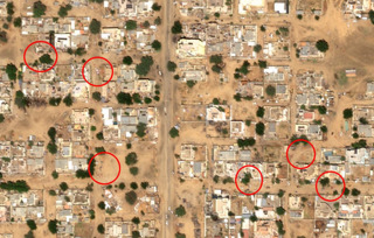 Η ανάλυση εικόνων από ένα νοσοκομείο στη συνοικία του Ελ Φάσερ αποκαλύπτει τουλάχιστον τέσσερις νέες «ομάδες» σορών, οι οποίες δεν φαινόντουσαν σε προηγούμενες λήψεις. Ορισμένα από τα αντικείμενα που εντοπίστηκαν έχουν μήκος από 1,1 έως 1,9 μέτρα.