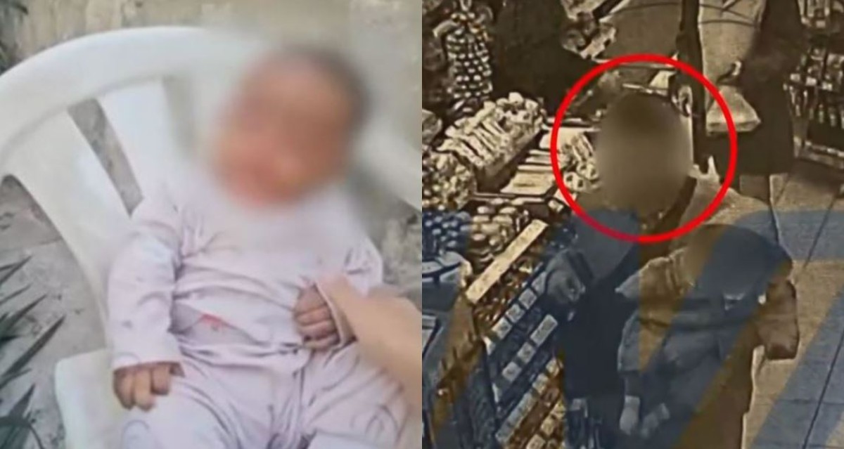 Το οπτικό υλικό καταγράφει την 43χρονη να ζητάει χρήματα από τον άνδρα. Στη συνέχεια εισέρχονται στο κατάστημα για την αγορά προμηθειών, ενώ την ώρα που η γυναίκα αναζητεί πάνες, ο άνδρας εξαφανίζεται παίρνοντας μαζί του το βρέφος. Η γυναίκα, μόλις αντιλαμβάνεται την απουσία τους, ζητά βοήθεια πανικόβλητη.