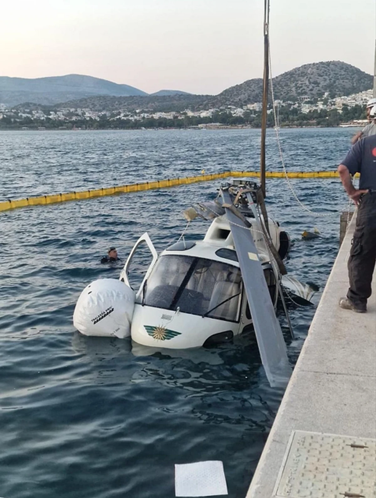 Όπως βλέπετε και στη φωτογραφία που εξασφάλισε το Newsbeast ο χώρος γύρω από το σημείο που είχε πέσει το ελικόπτερο έχει οριοθετηθεί ενώ φαίνονται και οι δύο δύτες που είχαν βουτήξει ώστε να δέσουν στα κατάλληλα σημεία το ελικόπτερο για να ανελκυθεί από τη θάλασσα.