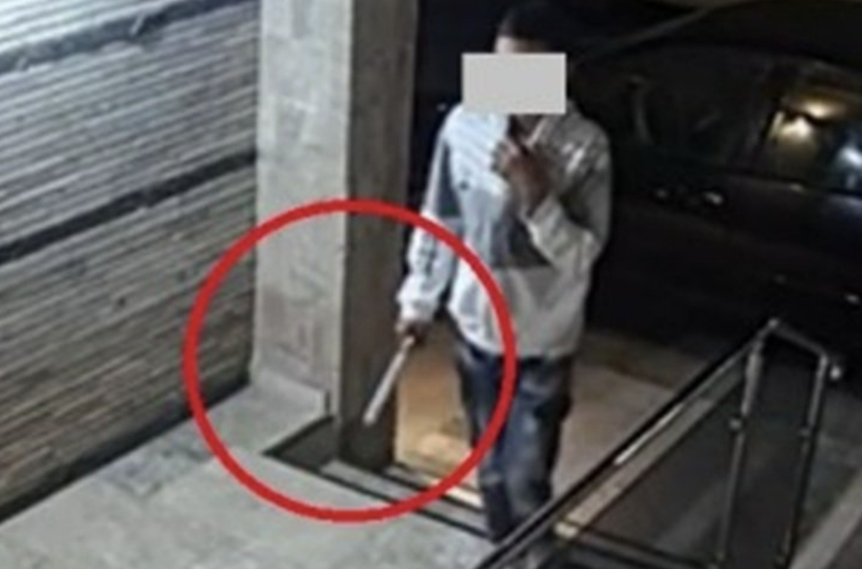 Σύμφωνα με μαρτυρίες, ο ένας από τους δράστες χτυπούσε με το ρόπαλο τη γυάλινη είσοδο για να την παραβιάσει, ενώ οι άλλοι δύο ετοιμάζονταν να εισέλθουν και να λεηλατήσουν το ξενοδοχείο.