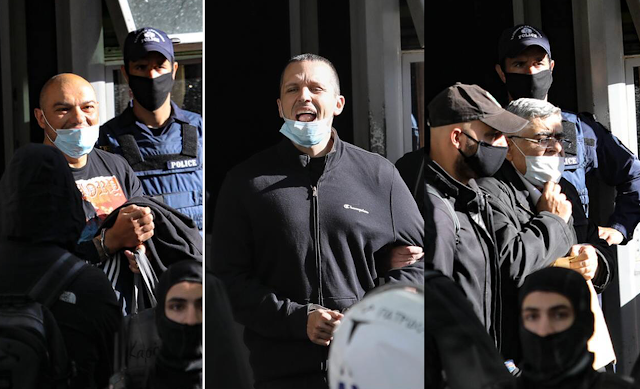 Με χειροπέδες στα χέρια, ο Νίκος Μιχαλολιάκος, ο Ηλίας Κασιδιάρης και τα υπόλοιπα μέλη της εγκληματικής οργάνωσης της Χρυσής Αυγής επιβιβάστηκαν σε βαν και λεωφορεία της ΕΛ.ΑΣ. προκειμένου να μεταφερθούν σε διάφορα σωφρονιστικά καταστήματα της χώρας.