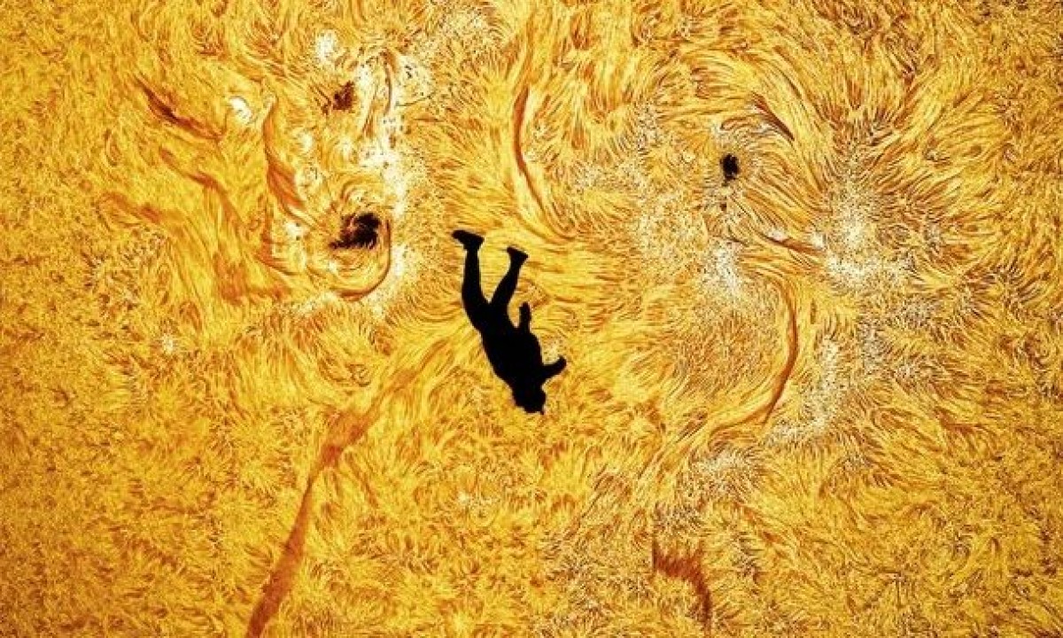 Ένας αστροφωτογράφος στην Αριζόνα κατέγραψε μια εικόνα που μοιάζει σχεδόν απίστευτη: έναν YouTuber σε ελεύθερη πτώση να ευθυγραμμίζεται με τη φλογερή επιφάνεια του Ήλιου, δημιουργώντας την εντύπωση ότι κατρακυλά στο κενό του διαστήματος μπροστά από το άστρο μας. Η φωτογραφία, με τον εύγλωττο τίτλο «Η Πτώση του Ίκαρου», δημιουργεί την ψευδαίσθηση ότι ο εναέριος ακροβάτης διασχίζει τον ηλιακό δίσκο και είναι αποτέλεσμα σχολαστικού και πολυήμερου σχεδιασμού.