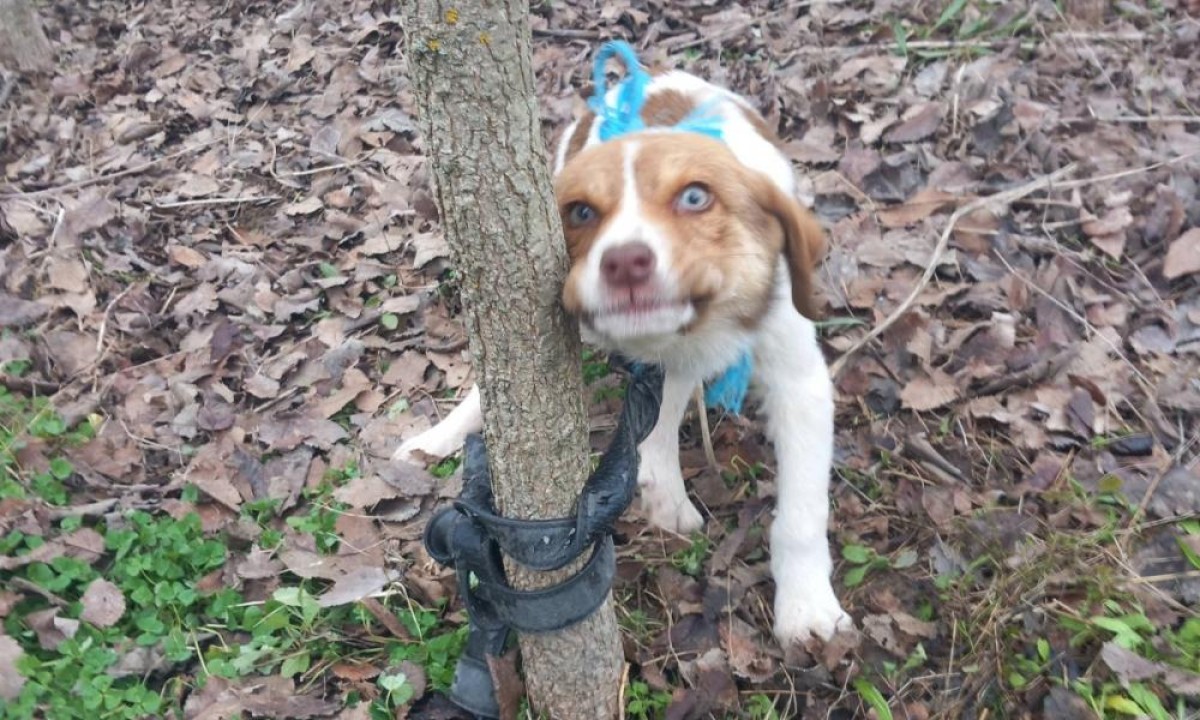 «Στην παρουσία του ανθρώπου άρχισε να ουρλιάζει», είπε η γυναίκα που το βρήκε και φώναξε εθελοντές για να το πάρουν, καθώς ήταν δεμένο στα πόδια με ζώνη και στο λαιμό με σχοινί.