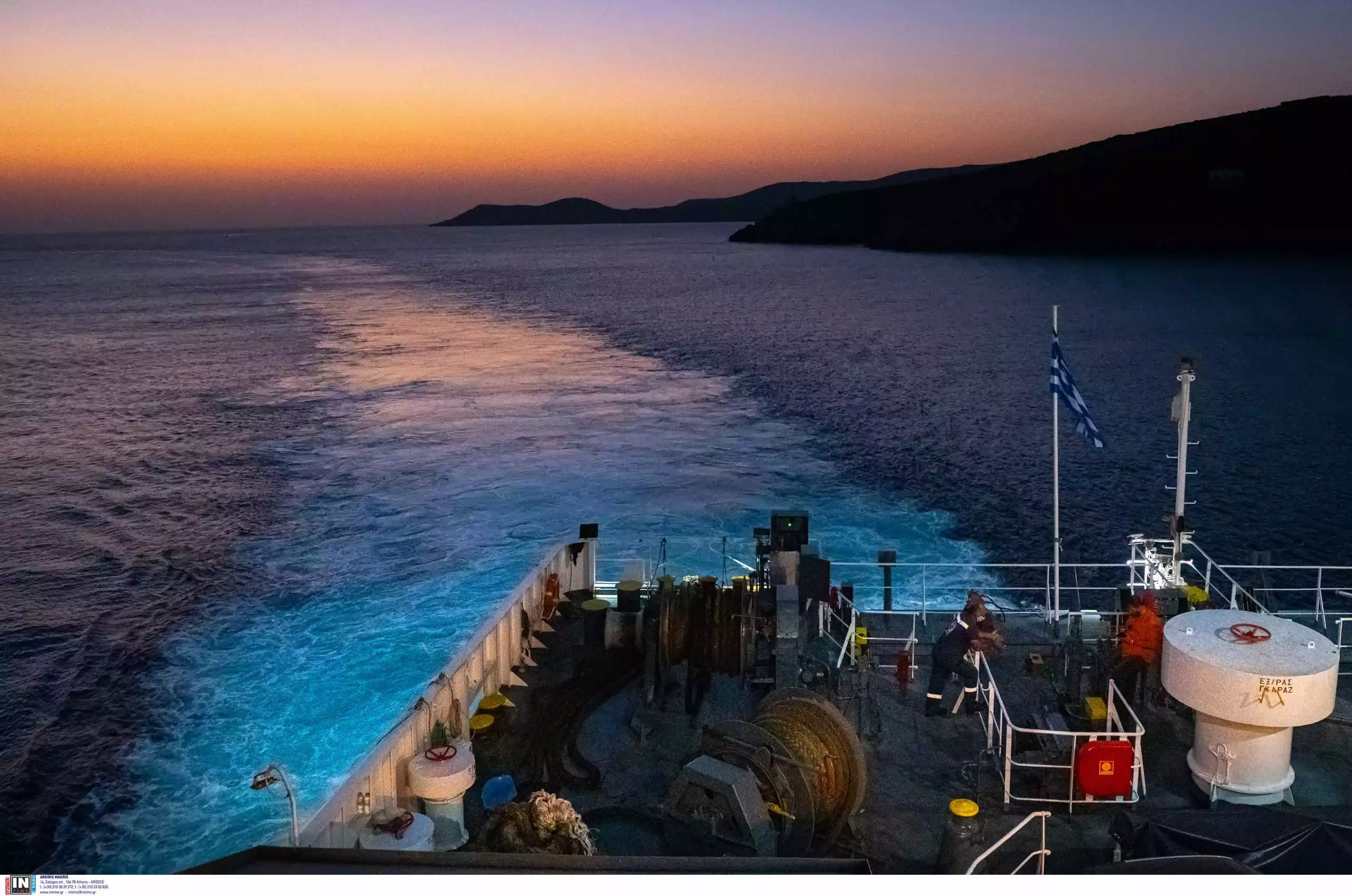Η δεξιά κύρια μηχανή του παρουσίασε βλάβη. Έτσι το ΙΟΝΙΣ πλέει με μειωμένη ταχύτητα προς το λιμάνι του Λαυρίου.