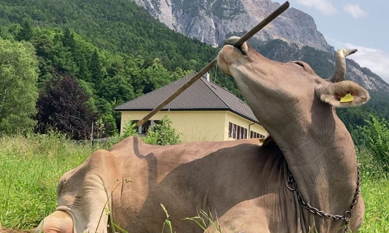 Η Veronika, μια αγελάδα που ζει σε ένα ορεινό χωριό στην αυστριακή ύπαιθρο, έχει περάσει χρόνια τελειοποιώντας την «τέχνη» του ξυσίματος χρησιμοποιώντας ξύλα, τσουγκράνες και σκούπες.