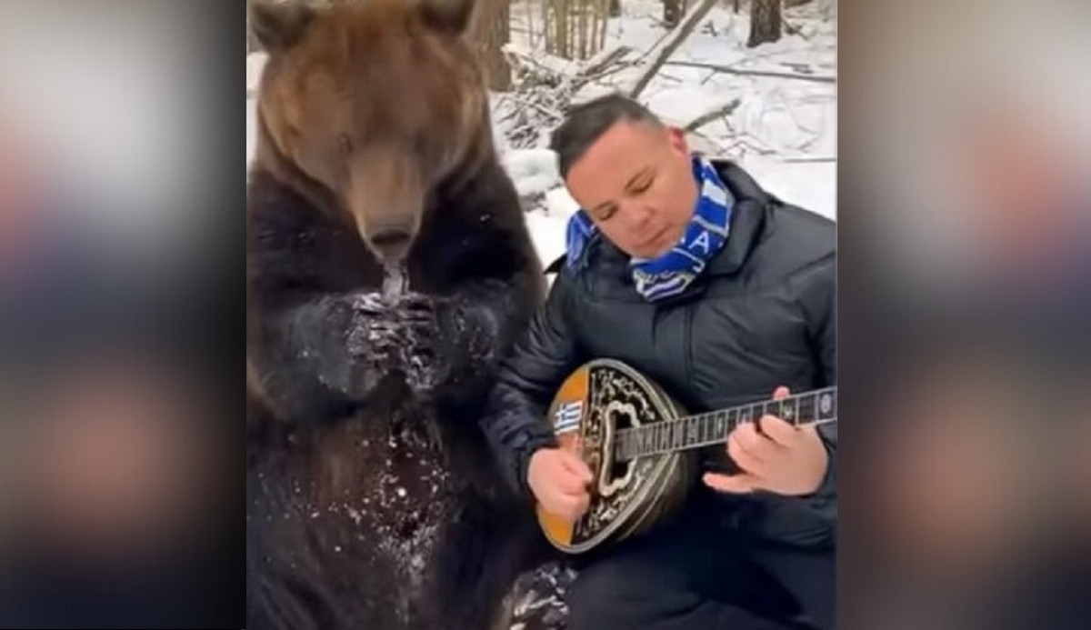 Απίστευτο: Έλληνας μουσικός παίζει μπουζούκι παρέα με μια αρκούδα και “μαγεύει” τη Μόσχα