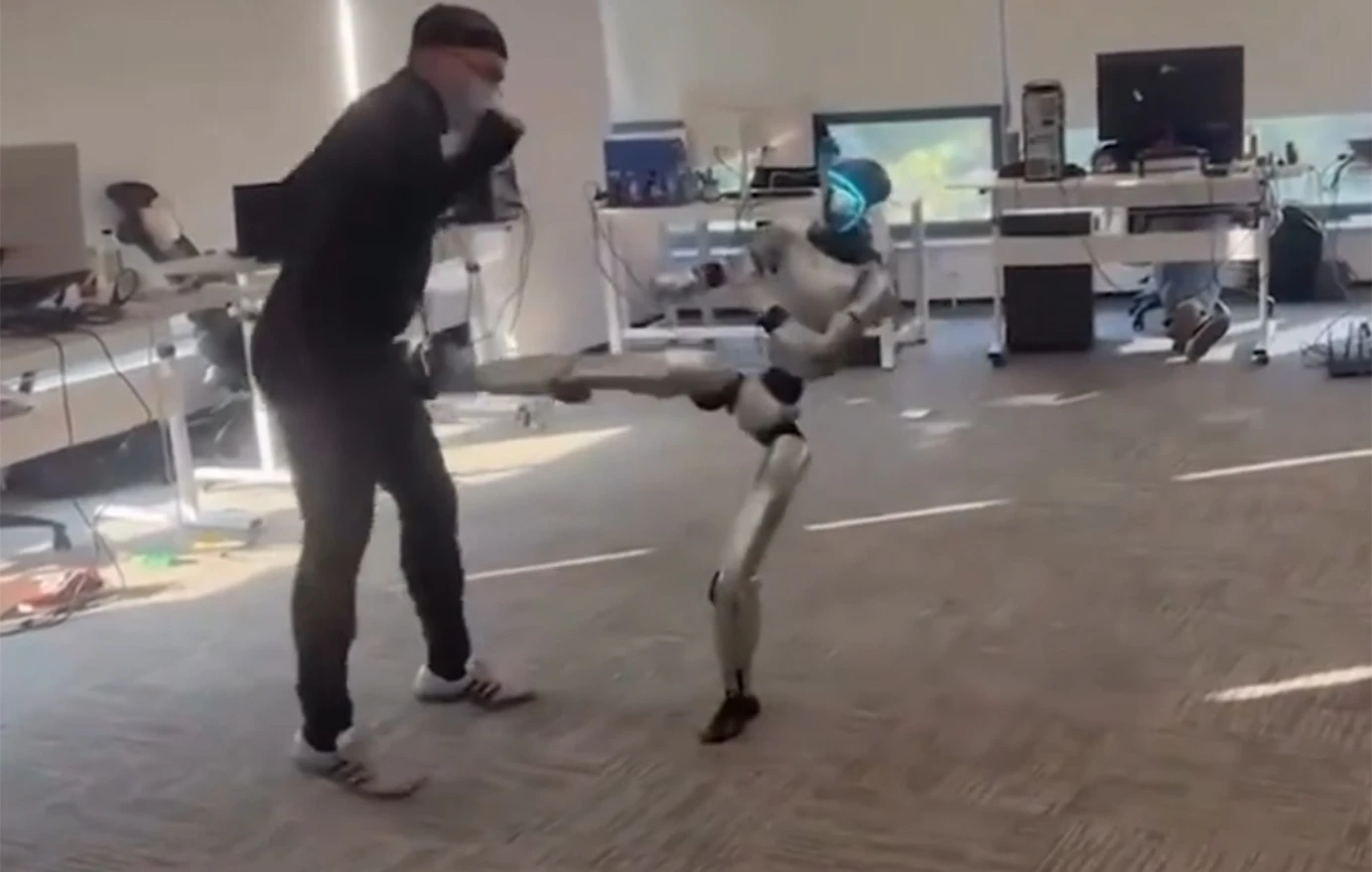 Το βίντεο που έγινε viral στα μέσα κοινωνικής δικτύωσης δείχνει έναν άνδρα που φοράει μια στολή motion capture – ένα κοστούμι με αισθητήρες που καταγράφουν τις κινήσεις του σώματος και τις μετατρέπουν σε ψηφιακά δεδομένα κίνησης. Δυστυχώς για αυτόν, αυτά τα δεδομένα μεταφέρονται απευθείας σε ένα ρομπότ Unitree G1, το οποίο αναπαράγει τις κινήσεις του στο δευτερόλεπτο. Έτσι, όταν ο άνδρας υψώνει το πόδι του για να δώσει μια υποτιθέμενη κλωτσιά, το ρομπότ τον μιμείται αμέσως – στοχεύοντας κατευθείαν στο καβάλο του. Μετά την κλωτσιά, ο άνδρας σκύβει από τον πόνο, κάτι που το ρομπότ μιμείται επίσης υπάκουα.