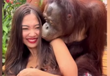 Στο βίντεο που δημοσιεύει η Daily Mail ο ασυγκράτητος ουρακοτάγκος εμφανίζεται να αγκαλιάζει την 27χρονη Έιντζελ Όραντζλορ και μετά να βάζει τα χέρια του στο στήθος της, να την τραβάει επάνω του και να της δίνει ένα φιλί στο μάγουλο. Στη συνέχεια, χαμογελάει πλατιά ποζάροντας για τις κάμερες των φίλων της «καλής» του…