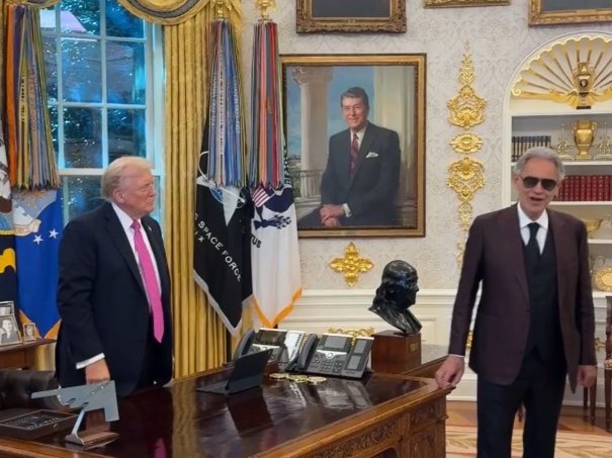 Ο διάσημος σταρ της όπερας Αντρέα Μποτσέλι ερμήνευσε ένα τραγούδι στον πρόεδρο Τραμπ στο Οβάλ Γραφείο την Παρασκευή (17/10), πριν από τη σημαντική συνάντηση με τον Ουκρανό πρόεδρο, Βολοντίμιρ Ζελένσκι.