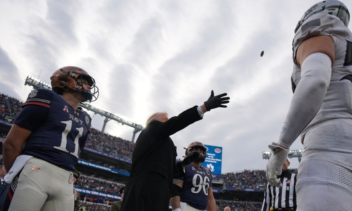 Ο πρόεδρος των ΗΠΑ Ντόναλντ Τραμπ έδωσε το σύνθημα για την έναρξη του αγώνα του αμερικανικού ποδοσφαίρου μεταξύ Army και Navy του 2025 με μια ασυνήθιστη τελετουργική ρίψη του κέρματος, η οποία έγινε viral στα μέσα κοινωνικής δικτύωσης.