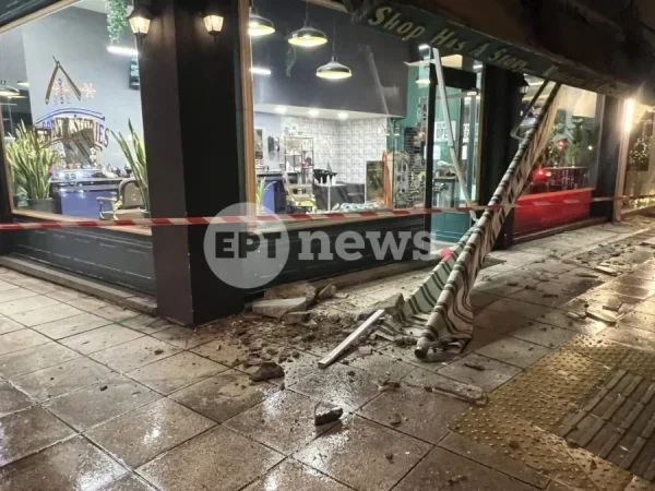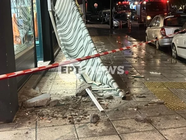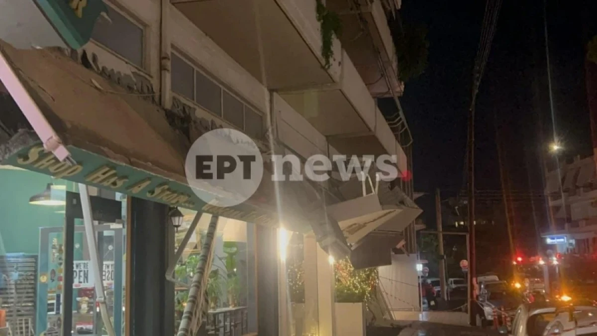 Μεγάλα κομμάτια τσιμέντου κατέληξαν στο πεζοδρόμιο, ενώ σύμφωνα με πληροφορίες λίγο έλειψε να πέσει και μονάδα κλιματιστικού, γεγονός που θα μπορούσε να έχει ακόμα σοβαρότερες συνέπειες.