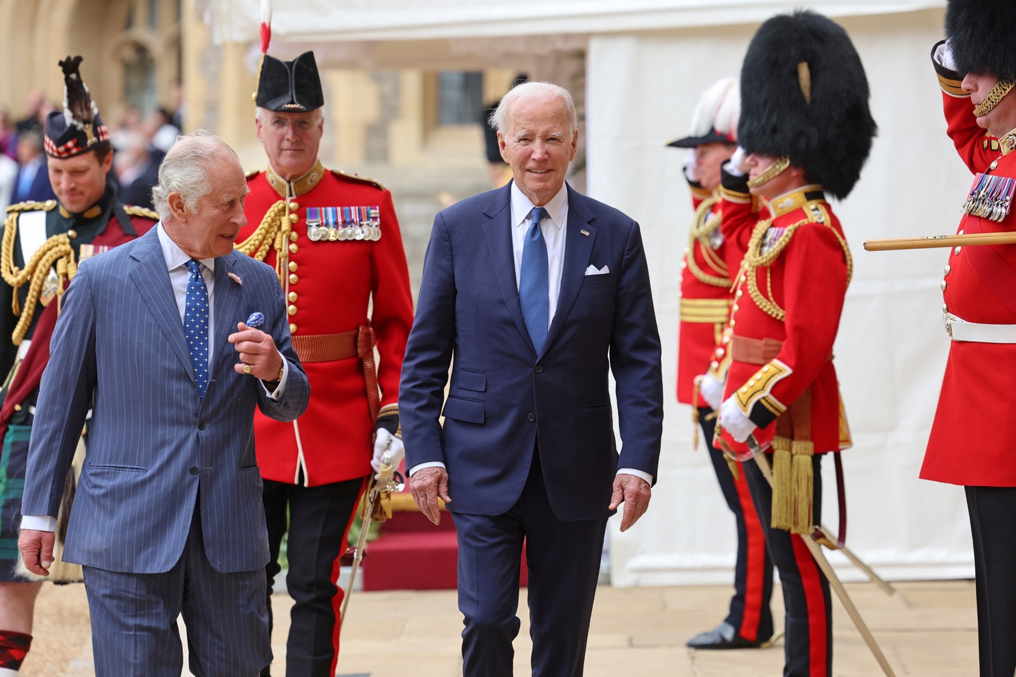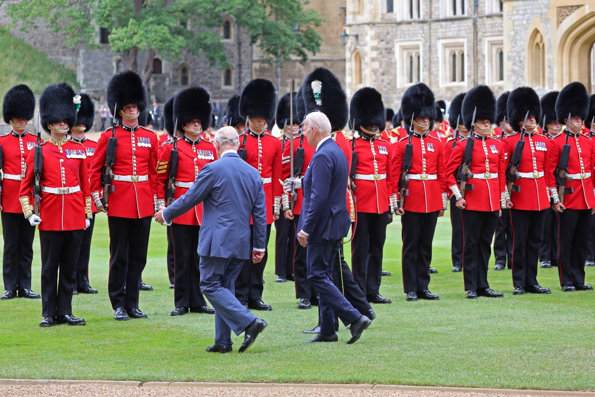 Οι δυο τους, περπάτησαν μπροστά από τη βασιλική φρουρά που σχηματίστηκε προς τιμήν του Μπάιντεν από τους φρουρούς της Ουαλίας, ωστόσο ο πρόεδρος Μπάιντεν φάνηκε να στέκεται μπροστά από έναν φρουρό και να έχει μια συνομιλία μαζί του, η οποία- για τον Βασιλιά Κάρολο- κράτησε περισσότερο απ΄όσο χρειαζόταν.