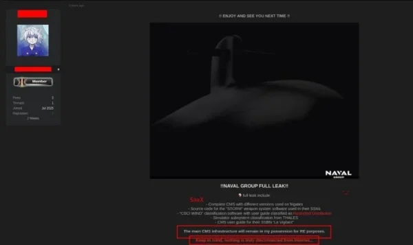 Η κυβερνοεπίθεση ήρθε στο φως όταν χάκερ που αυτοαποκαλείται «Neferpitou» έθεσε προς πώληση 1 TB εσωτερικών δεδομένων της Naval Group, προσφέροντας δωρεάν «δείγμα» 13 GB του περιεχομένου.