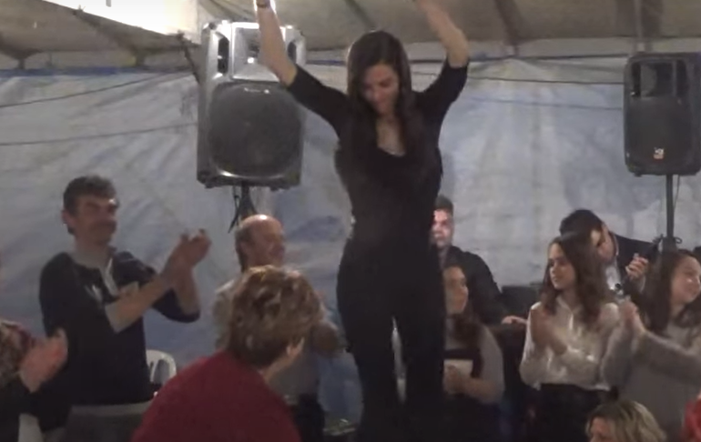 Η νεαρή κοπέλα «άναψε φωτιές», με τα κλαρίνα πριν να έχουν δώσει το ρυθμό και ορισμένους εκ των καλεσμένων να καλούν τις κυρίες να χορέψουν, έστω και παρεκινδυνευμένα, καθώς έφεραν πλαστικά τραπέζια στη μέση της πίστας.