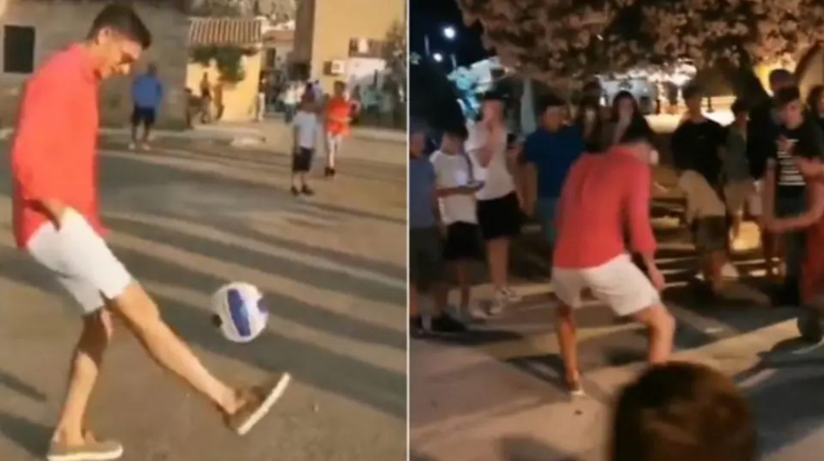 Εκεί, ο φακός τον έπιασε να παίζει μπάλα με πιτσιρικάδες σε πλατεία, χαρίζοντάς τους στιγμές που σίγουρα δεν πρόκειται να ξεχάσουν ποτέ!