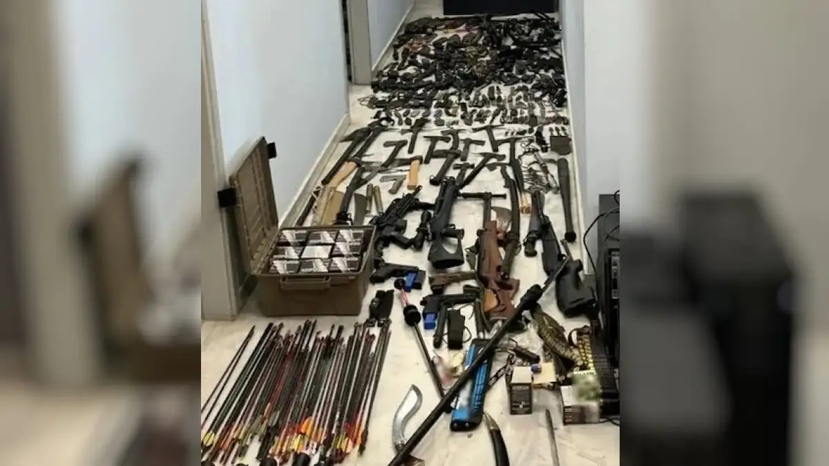 Κατά τον έλεγχο βρέθηκαν 2 δυναμίτες, 7 αεροβόλα όπλα, 5 σπαθιά, 107 τσεκούρια, 177 μαχαίρια (εκ των οποίων 116 στρατιωτικού τύπου και 61 αναδιπλούμενα), 3 βαλλίστρες, 3 τόξα, 51 βέλη, 24 ματσέτες, 1 κάννη πυροβόλου, 6 διόπτρες σκόπευσης, 4 ρόπαλα, 1 φυσοκάλαμο με 9 βελόνες, 1 ακόντιο 2 μέτρων με προσαρμοσμένο μαύρο μαχαίρι, 4 γεμιστήρες, 741 φυσίγγια διαφόρων διαμετρημάτων, 9 πολεμικά αστεράκια (shuriken) και 3 πτυσσόμενα σιδερένια.