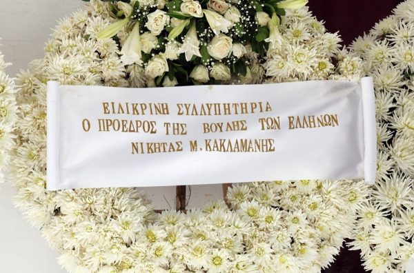 Παρά την παράκληση της οικογένειας να μην κατατεθούν στεφάνια, αλλά να στηριχθεί αντί αυτών το έργο του ΤΑΣΕΗ (Ταμείο Αλληλοβοήθειας Σωματείου Ελλήνων Ηθοποιών) –μια επιθυμία που είχε εκφράσει ο ίδιος ο εκλιπών– δεκάδες στεφάνια κατέκλυσαν τον χώρο, μαρτυρώντας την αγάπη και τον σεβασμό που ενέπνευσε.