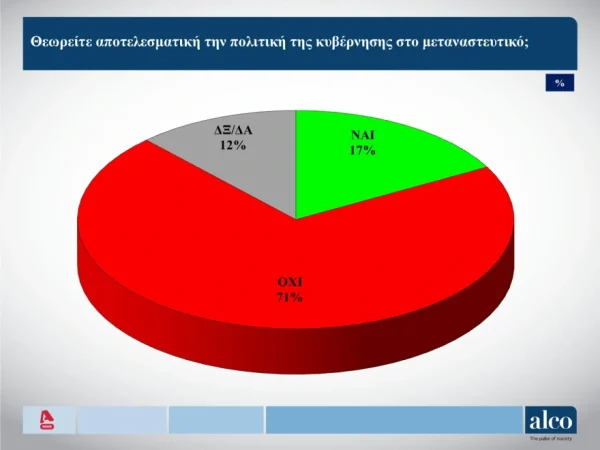 Στο πεδίο των θεμάτων που απασχολούν την κοινωνία, το μεταναστευτικό ξεχωρίζει ως το πλέον αρνητικά αξιολογούμενο, με το 71% να χαρακτηρίζει αναποτελεσματική την κυβερνητική πολιτική. Επίσης, το 54% θεωρεί ότι δεν θα υπάρξει πραγματική τιμωρία για το σκάνδαλο στον ΟΠΕΚΕΠΕ, παρά την εμπλοκή της Ευρωπαϊκής Εισαγγελίας.