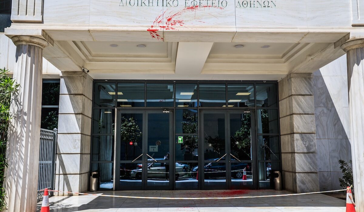 Εφετείο Αθηνών: Κουκουλοφόροι επιτέθηκαν με κόκκινη μπογιά και έσπασαν με βαριοπούλες τις τζαμαρίες της εισόδου
