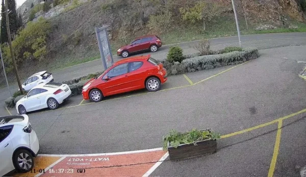 Στις εικόνες διακρίνεται ένα μπορντό αυτοκίνητο, το οποίο οι δράστες χρησιμοποίησαν για να φτάσουν στην Αράχωβα και να εκτελέσουν τον Γιάννη Λάλα. Το όχημα, λίγη ώρα μετά τη δολοφονία, βρέθηκε καμμένο σε απόσταση περίπου 20 λεπτών από το ξενοδοχείο όπου έγινε η εκτέλεση, σε μια προσπάθεια των δραστών να σβήσουν κάθε ίχνος.