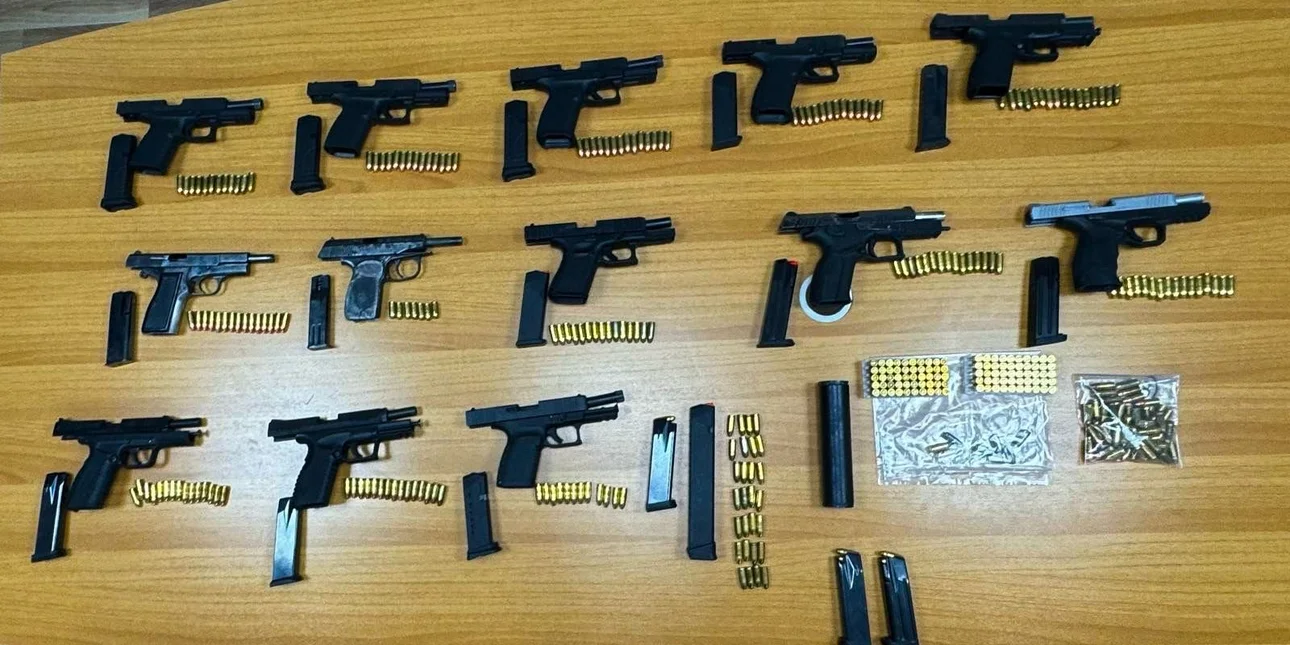 Σύμφωνα με αστυνομικές πηγές, κατά τις εφόδους της ΕΛΑΣ βρέθηκαν τα 13 όπλα και ποσότητες ναρκωτικών.
