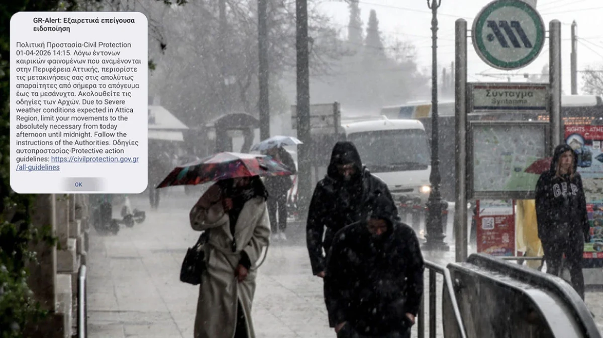 Στο μήνυμα επισημαίνεται χαρακτηριστικά: «Λόγω έντονων καιρικών φαινομένων που αναμένονται στην Περιφέρεια Αττικής περιορίστε τις μετακινήσεις σας στις απολύτως απαραίτητες από σήμερα το απόγευμα έως τα μεσάνυχτα».