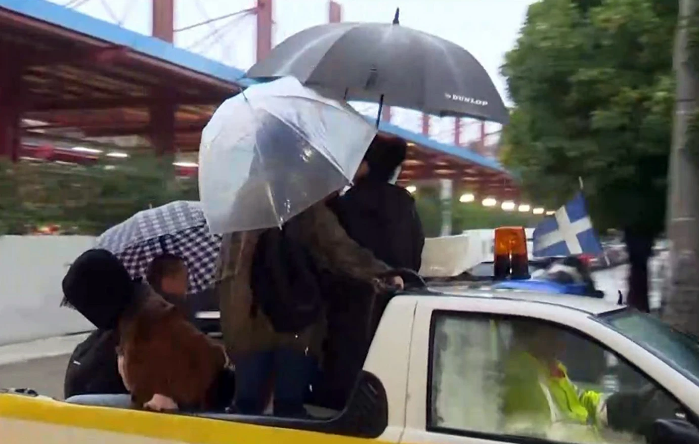 Μάλιστα, καρότσα του Δήμου βοηθάει τους πεζούς να περάσουν τον δρόμο. Πολλοί βάζουν και σακούλες στα πόδια τους προκειμένου να καταφέρουν να περάσουν απέναντι.