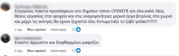 Άλλος, τόνισε πως «και μόνο η ανάρτηση σου τα λέει όλα!! Άχρηστος μαζί με πολλούς άχρηστους!!», ενώ τρίτος υπογράμμισε ότι «τα πάντα επικοινωνία..! Είδαμε και τι κάνατε για την Θεσσαλία πού πνίγηκε και την υπόλοιπη Ελλάδα..! Καιρός να φύγετε απατεώνες». Και αυτά είναι μόνον λίγα από τα σχόλια κατακραυγής και… γέλιων που συνοδεύουν την ανάρτηση του κοινοβουλευτικού εκπροσώπου της ΝΔ και βουλευτή Χίου.