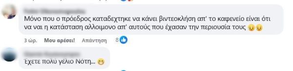 «Μόνο που ο πρόεδρος καταδεχτηκε να κάνει βιντεοκλήση απ’ το καφενείο είναι ότι να ναι η κατάσταση» αναφέρει χαρακτηριστικά ένα σχόλιο στην ανάρτηση του κ. Μηταράκη.