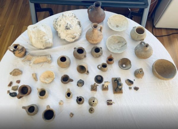 Ειδικότερα, σύμφωνα με την ανακοίνωση της ΕΛΑΣ, στο πλαίσιο διενεργούμενης προκαταρκτικής εξέτασης, πραγματοποιήθηκε έρευνα στην οικία του κατηγορούμενου, όπου βρέθηκαν και κατασχέθηκαν 39 αρχαία και πιθανώς αρχαία αντικείμενα, όπως μαρμάρινες και πήλινες φιάλες και κεφαλές, πυξίδες, ειδώλια, κύπελλα, αμφορέας, αγγείο, αρύβαλλος, οινοχόη, κυάθια, όστρακα, τμήμα λίθου, καθώς και 1 φιάλη με υγρό και ανθρώπινο έμβρυο.