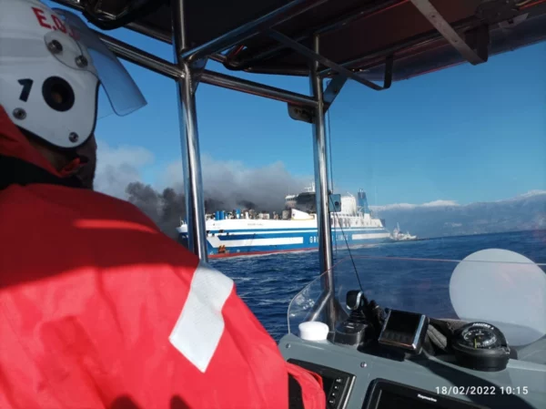 Στις 4.30 τα ξημερώματα σήμανε συναγερμός στο πλοίο και αμέσως άρχισε η διαδικασία εκκένωσης. Οι επιβάτες του Euroferry Olympia του ομίλου Grimaldi εγκατελειψαν το πλοίο με σωσίβιες λέμβους και περισύλλεχθηκαν από παραπλέοντα σκάφη. Σύμφωνα με τις τελευταίες πληροφορίες, υπάρχουν τρεις τραυματίες. Ευτυχώς ο καιρός ήταν πολύ καλός κι έτσι η επιχείρηση διάσωσης εξελίχθηκε ομαλά.