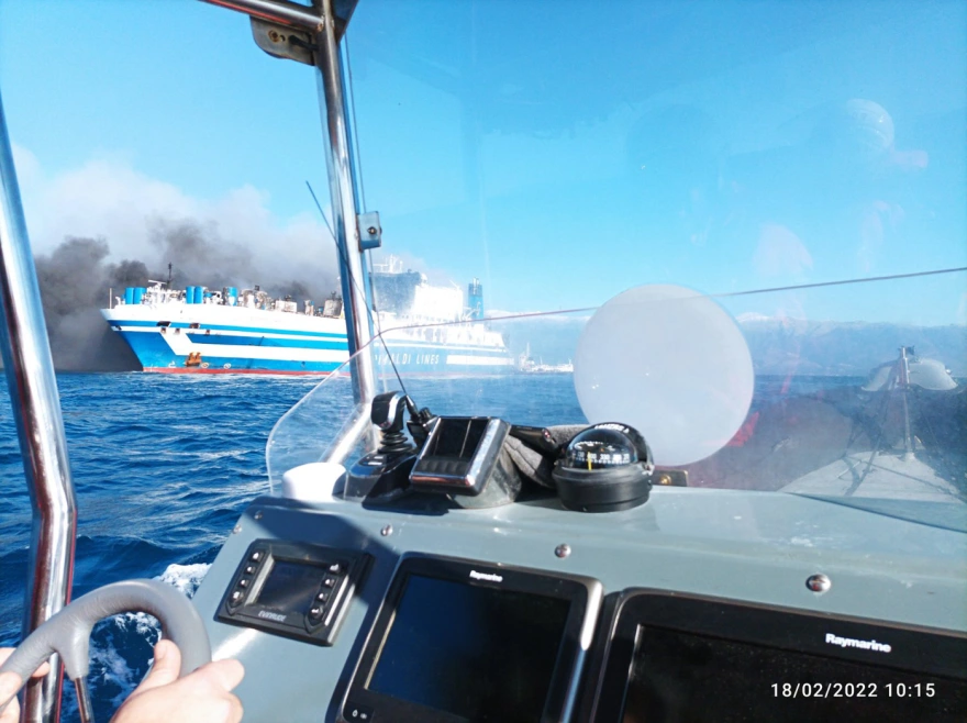 Στις 4.30 τα ξημερώματα σήμανε συναγερμός στο πλοίο και αμέσως άρχισε η διαδικασία εκκένωσης. Οι επιβάτες του Euroferry Olympia του ομίλου Grimaldi εγκατελειψαν το πλοίο με σωσίβιες λέμβους και περισύλλεχθηκαν από παραπλέοντα σκάφη. Σύμφωνα με τις τελευταίες πληροφορίες, υπάρχουν τρεις τραυματίες. Ευτυχώς ο καιρός ήταν πολύ καλός κι έτσι η επιχείρηση διάσωσης εξελίχθηκε ομαλά.