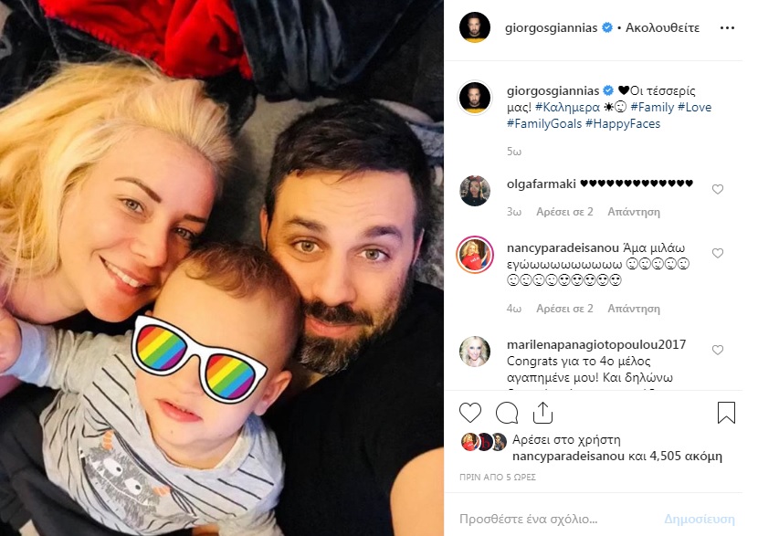 Φυσικά, τα σχόλια από κάτω πήραν «φωτιά»! Τόσο οι διάσημοι φίλοι του ζευγαριού όσο και οι θαυμαστές του δημοφιλούς τραγουδιστή δεν σταμάτησαν να εύχονται στον Γιώργο και στην Ελευθερία «Συγχαρητήρια» για την εγκυμοσύνη. «Μακάρι να μας στείλει ο Θεός, το θέλω πολύ. Θέλω να κάνω 3 παιδιά, αλλά καλό θα ήταν κι ένα ακόμα, ένα κοριτσάκι, να γίνουν ζευγαράκι. Η οικογένεια είναι μεγάλη δύναμη, είναι παρέα, είναι χαρά», είχε δηλώσει σε παλαιότερη συνέντευξή του ο Γιώργος Γιαννιάς!