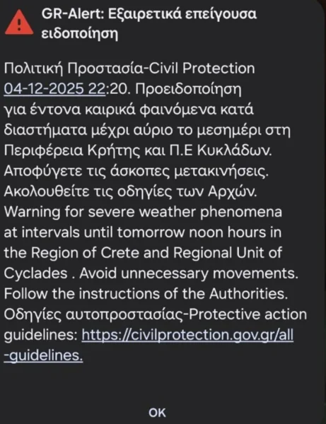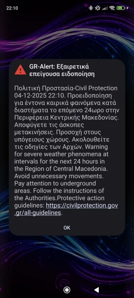 Συγκεκριμένα, έστειλε μήνυμα σε Θεσσαλονίκη, Εύβοια, Μαγνησία, Λάρισα, Σποράδες και Ηράκλειο.