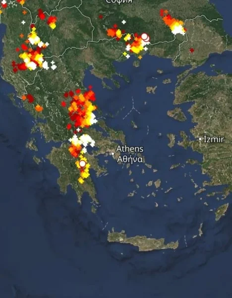 Σε περιοχές που εκδηλώνεται έντονη κεραυνική δραστηριότητα: