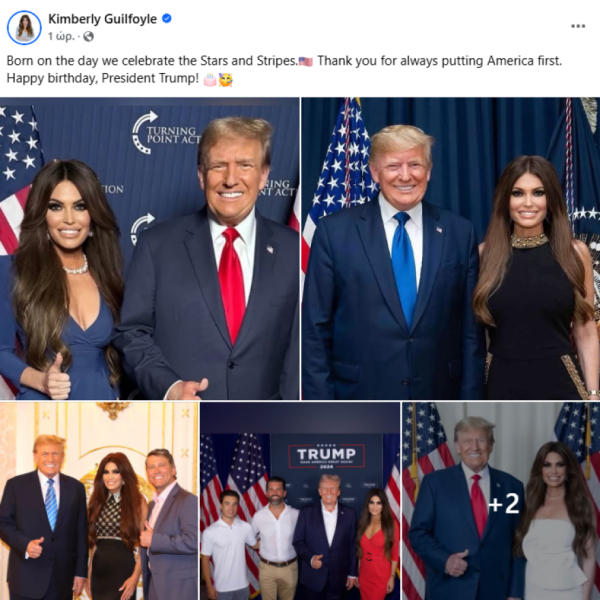 Η Κίμπερλι Γκιλφόιλ ευχήθηκε «χρόνια πολλά» στον Αμερικανό πρόεδρο, Ντόναλντ Τραμπ για τα 79α γενέθλιά του, μέσω ανάρτησης στα μέσα κοινωνικής δικτύωσης.