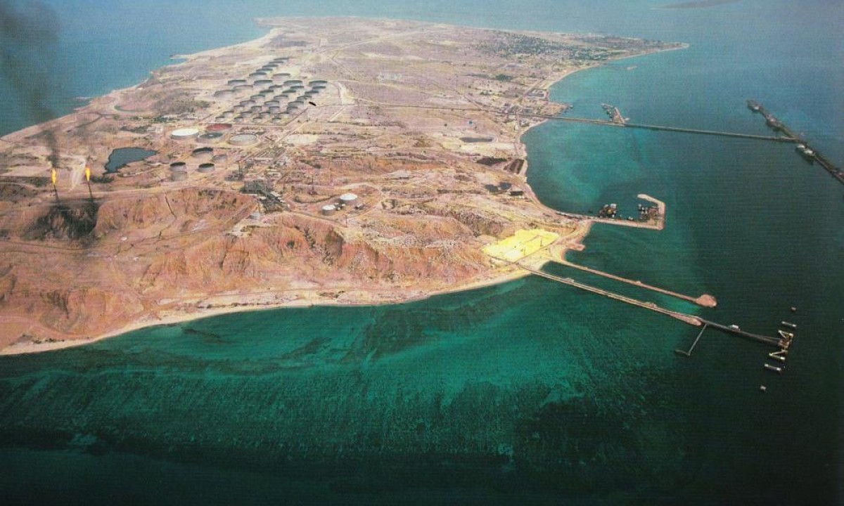 Το νησί φιλοξενεί 55 δεξαμενές αργού πετρελαίου, συνολικής χωρητικότητας άνω των 34 εκατομμυρίων βαρελιών. Πρόσφατα, ένα υπερδεξαμενόπλοιο τύπου VLCC φόρτωσε 2 εκατομμύρια βαρέλια, ενώ μικρότερα πλοία χρησιμοποιούνται στην ανατολική πλευρά. Η φόρτωση πετρελαίου συνεχίζεται αδιάκοπα, ακόμη και εν μέσω στρατιωτικών εντάσεων.