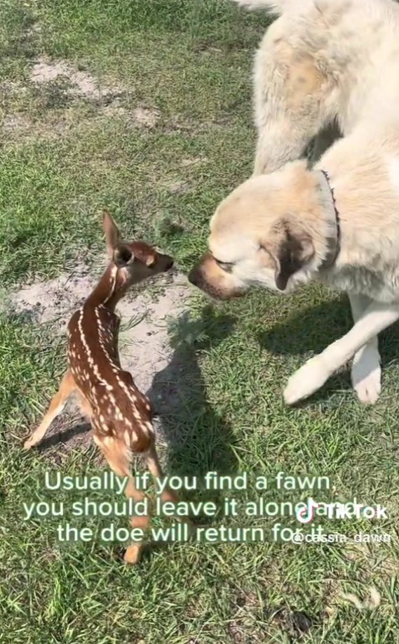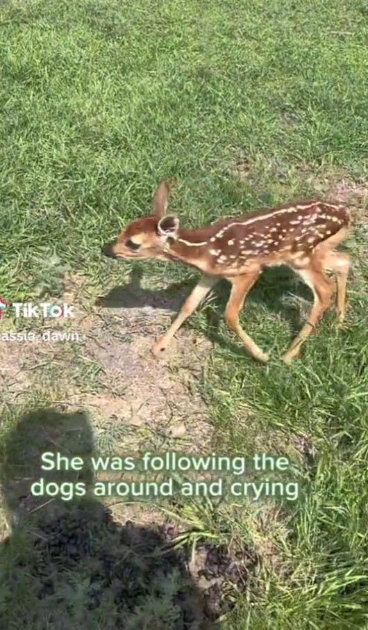 “Είχαμε έναν απροσδόκητο επισκέπτη στη φάρμα”, έγραψε η Cassia, μαζί με ένα βίντεο με ένα γλυκό νεαρό ελαφάκι που φαινόταν αγχωμένο. “Ακολουθούσε τα σκυλιά και έκλαιγε. Συνήθως, αν βρείτε ένα ελαφάκι, πρέπει να το αφήσετε ήσυχο και η ελαφίνα θα επιστρέψει γι’ αυτό. Αλλά αυτό το μικρό ήταν σε αγωνία και δεν ήταν πουθενά κοντά στο σημείο όπου μια ελαφίνα θα έκρυβε ένα ελαφάκι”.
