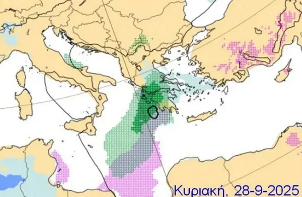 «Προειδοποίηση για εκδήλωση ισχυρών βροχοπτώσεων και καταιγίδων στην περιοχή σας από τις βραδινές ώρες του Σαββάτου 27/09/2025 έως τις βραδινές ώρες της Κυριακής 28/09/2025. Προσοχή στις μετακινήσεις σας. Ακολουθείτε τις οδηγίες των αρχών».