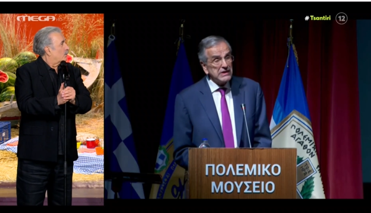 Μα αυτόν τον τρόπο επέλεξε να σχολιάσει ο Λάκης Λαζόπουλος, στα πλαίσια της τελευταίας φετινής εκπομπής «Αλ Τσαντίρι Νιουζ», τα όσα συνέβησαν στη Νέα Δημοκρατία, με τις δηλώσεις τόσο του Αντώνη Σαμαρά, όσο και του Κώστα Καραμανλή, καθώς και τη διαγραφή του Αντώνη Σαμαρά από το κόμμα.