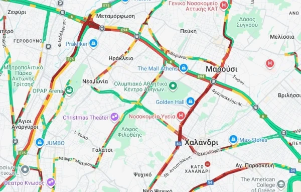 20′-25′ από κόμβο Μεταμόρφωσης έως κόμβο Πεντέλης