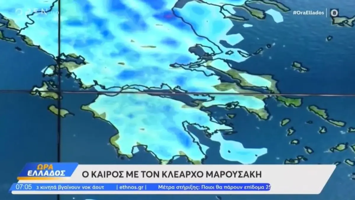 Ο Κλέαρχος Μαρουσάκης παρουσίασε την αναλυτική πρόγνωση του καιρού μέσα από τη συχνότητα του OPEN και την εκπομπή «Ώρα Ελλάδος».
