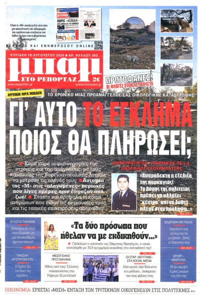 Facebook X LinkedIn Pinterest Messenger Messenger Viber Διαβάστε τα πρωτοσέλιδα και τα οπισθόφυλλα των κυριακάτικων εφημερίδων NewsRoom18.08.2024, 08:30 738 Facebook X LinkedIn Pinterest Messenger Messenger Viber Ακολουθήστε το Europost.gr στο Κάνε Share στα Social Media Facebook X LinkedIn Pinterest Messenger Messenger Viber