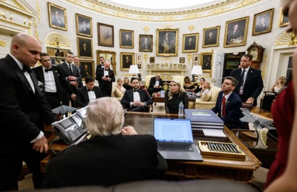 Σε άλλη φωτογραφία, την οποία δημοσιοποίησε ο Μάρκο Ρούμπιο, φαίνεται ο Αμερικανός υπουργός Εξωτερικών με τον Πιτ Χέγκσεθ, τον Στίβεν Μίλερ, τον Τζέι Ντι Βανς και άλλους συμβούλους να βρίσκονται πίσω από την καρέκλα του Ντόναλντ Τραμπ. Ο πρόεδρος κάθεται στο γραφείο του και παρακολουθεί κάτι που του δείχνουν σε κινητό τηλέφωνο.