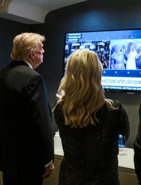 Σε άλλη εικόνα φαίνεται ο Τραμπ την ώρα που δίνει συνέντευξη Τύπου για την επίθεση και στο πλευρό του βρίσκονται η Κάρολαϊν Λέβιτ, ο Πιτ Χέγκσεθ και ο Τζέι Ντι Βανς.